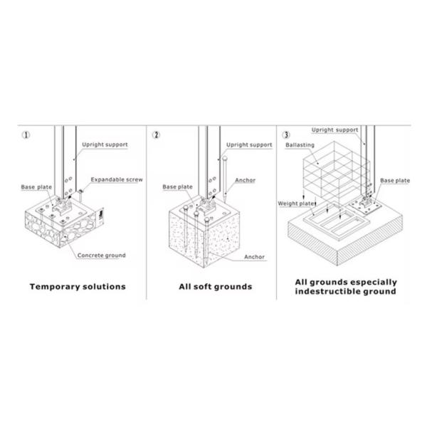 | Fixing Solution | Ground anchor, expandable bolt, weight plate, etc. | |||